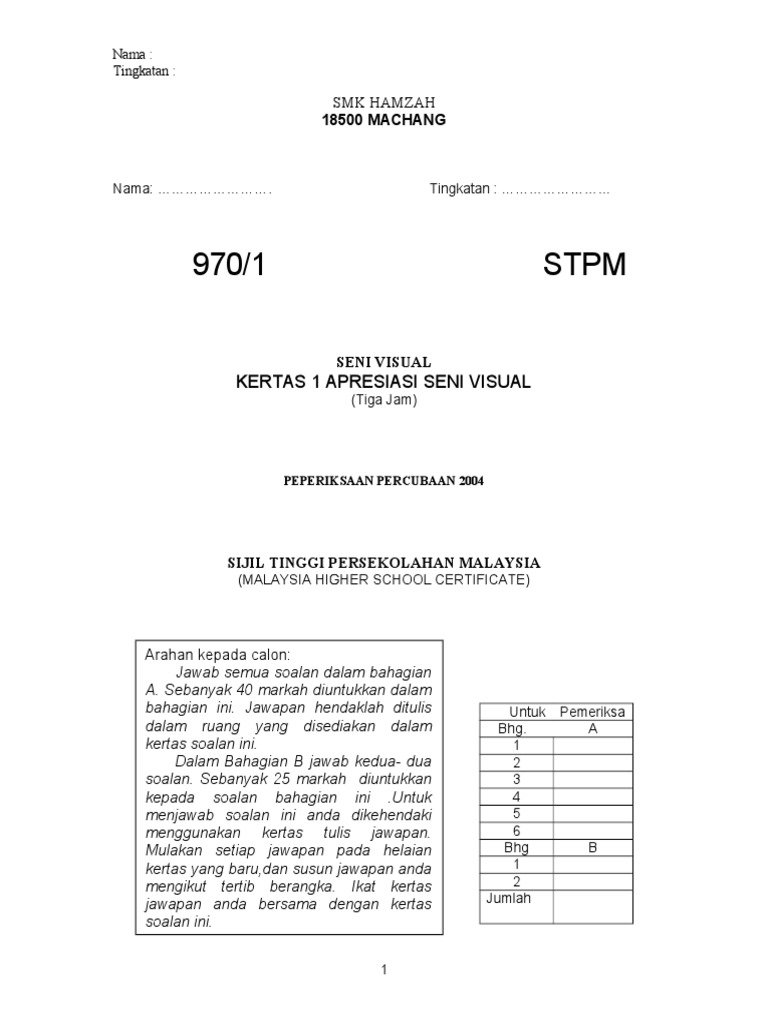 Soalan Seni Visual Kertas 1 Stpm Pdf